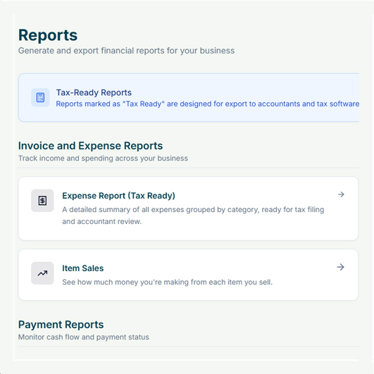 All expenses remain organized throughout the year and can be exported into tax-ready reports. This helps accountants identify deductions and reduces last-minute preparation work.