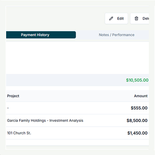 • Track contractor payment history and invoices